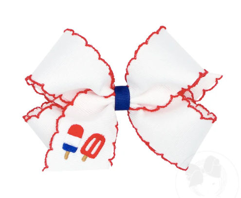 Popsicle Embroidered Bow w/ Red Moonstitch- Med.